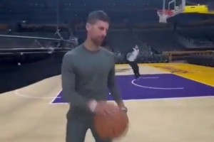 梦幻联动🔥德约在湖人主场三分一发入魂!霸王步庆祝!